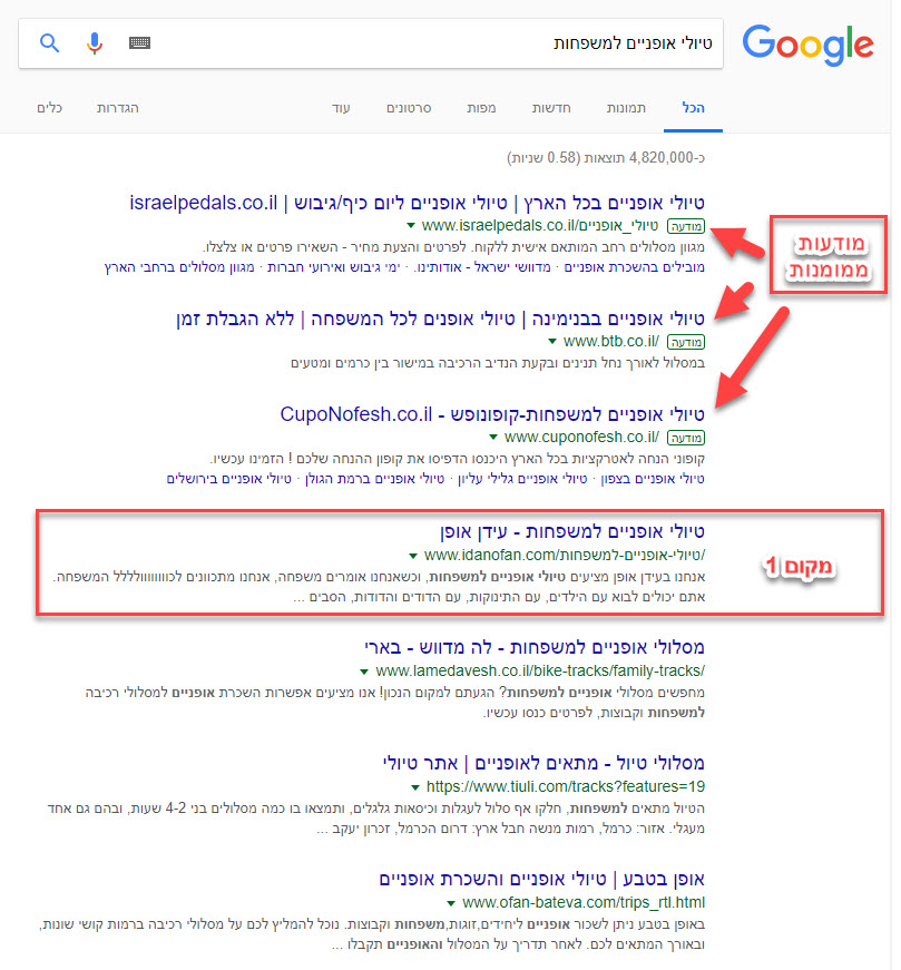 מקום 1 בביטוי המרכזי " טיול אופניים למשפחות".